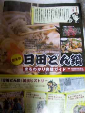 大分県日田市の新名物「日田どん鍋」が、2008年12月1日(月)から同市内の旅館や飲食店に登場します。(もちろん当館も参加してます。)スープや具材、薬味などに大分県産の肉、日田産の野菜をふんだんに使った、各店オリジナルのご当地鍋が全18種類!冬限定(2008年12月1日~2009年3月22日)の日田の味覚で心も体も温まって下さい。これからの時季、忘年会や新年会にもおススメです。